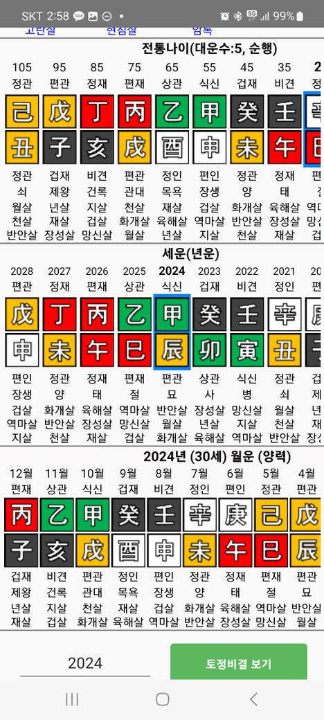 드디어 정화(丁日主)가 힘을 얻고, 목생화(재성→내 힘)로 이어져 가장 좋다고 할 수 있는 운입니다.