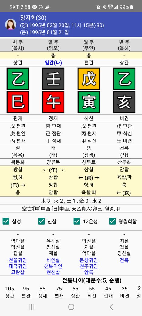 1995 01 21 (음력) 오전 11:15분 여자
