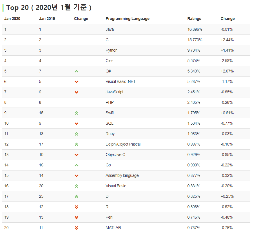 직전 조사보다 비율이 더 올라가서 Java와 거의 차이가 없네요.