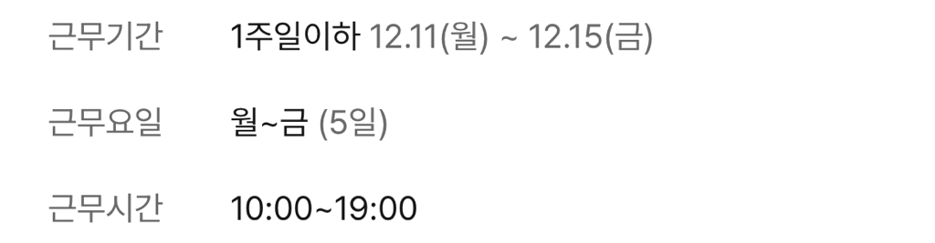 현재 사진으로 보았을 때, 근무시간이 10시에서 19시로만 되어 있고, 근무지가 어딘지 적혀있지 않습니다