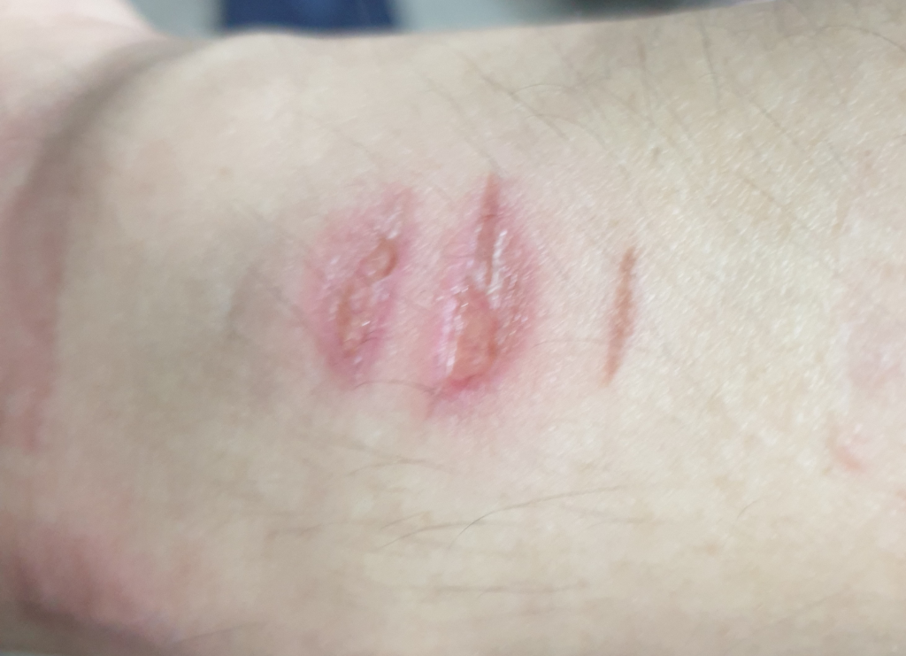 병원에 내원하셔서, 치료받으셔야, 흉이 덜 남습니다.