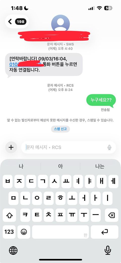 전화번호 010이지만, 절대 문자나 전화 내용을 믿지 마세요.
