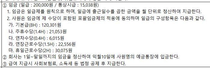 위와 같이 근로계약서 작성되어있습니다.