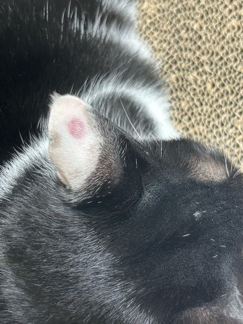 고양이 귀 뒤 점이 붉게 변했는데, 왜 이런걸까요..?