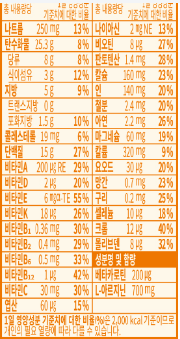 하지만 총칼로리를 보면 1팩당 200kcal 로 이것으로 충분한 칼로리를 섭취하기는 어렵습니다.