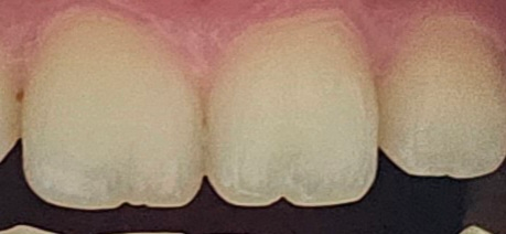 손톱을 물어 뜯는 습관에 의해서 나타나는 앞니 손상으로 보여집니다. 정상적인 치아의 모양은 아니며 법랑질 소실이 상당히 보입니다. 앞니의 경우에는 심미적으로 중요한 위치에 있는 치아이므로 조기에 치료하는 것이 도움이 될 수 있습니다.
