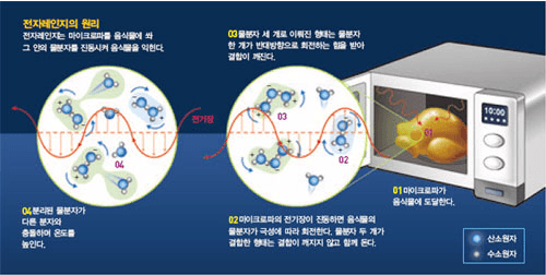 마그네트론 등에 방출되는 극초단파를 수분에 쏘이면 수분의 온도가