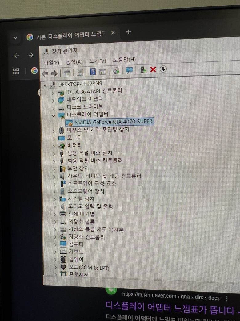 장치관리자 엔디비아 디스플레이 어뎁터느낌표