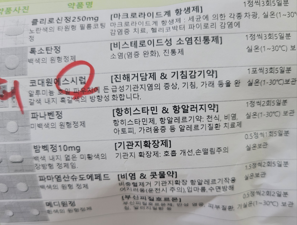 위의 처방전중에 항생제가 피임약과 함께 드셨을때 피임효과를 떨어 뜨릴수는 있습니다.