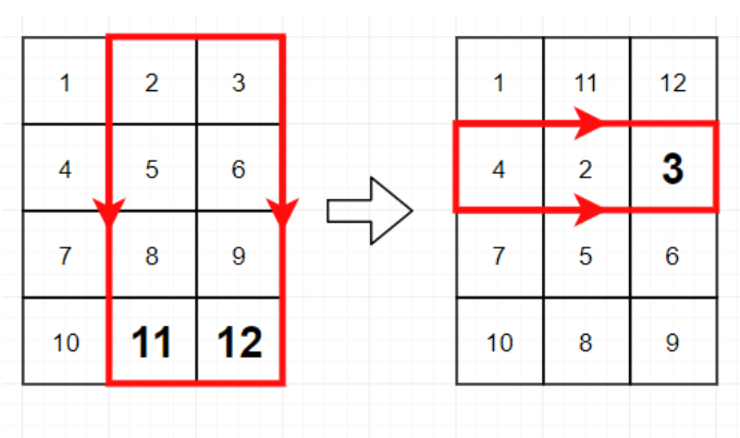 그림과 같이 4행 3열의 배열이 있는데 오른쪽 그림과같이 숫자 배열을 바꾸려면 어떻게 코딩해야 하나요?