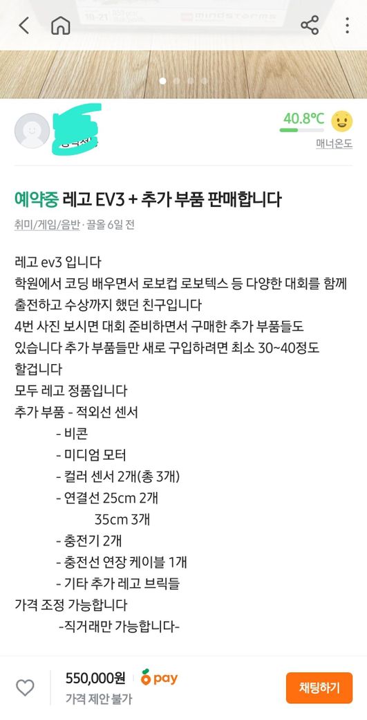 대학입학 후 예전 사용하던 중고물품을 당×에 올렸습니다. 4일 전 40대 분이오셔서 거래했습니다