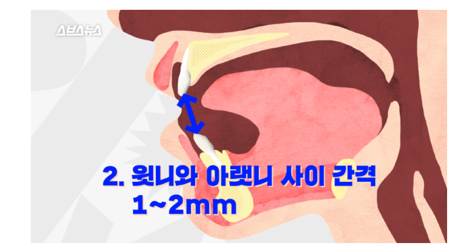혀 끝을 앞니와 입천장 경계부분이 붙여주시면 자연스럽게 위,아래 치아 공간이 생깁니다. 혀 위치를 위와 같이 바꿔보시기 바랍니다.