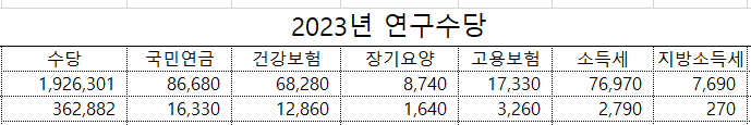 2023년도 연구수당 소득세와 지방소득세 어떻게 나온 건지 알려주세요..ㅜㅜ