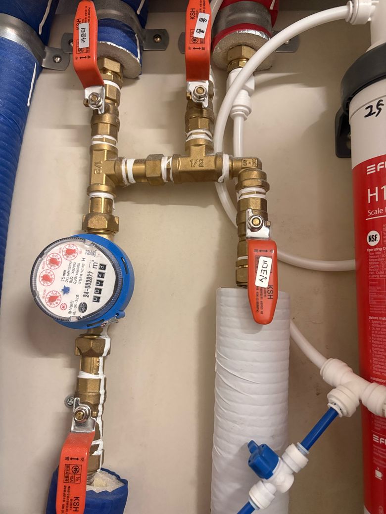 배관을 보니 단열재도 잘 처리되어 있고 배관 연결도 문제가 없어 보입니다.