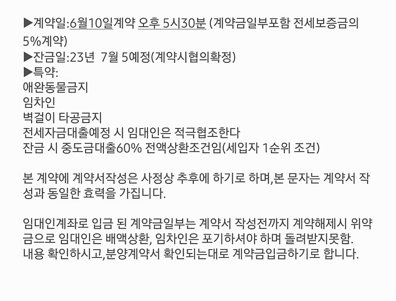 특약사항에 보면 중도금을 전액상환하여 대출이 없는상태로 세입자를 1순위로 하는 조건이 있습니다. 1순위인경우 전세금이 과하게 높지않은이상 전세보증보험은 가능합니다. 전세보증보험에 가입되지않으면 계약을 무효로한다라는 특약이 필요합니다.