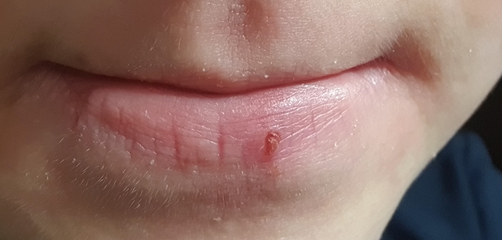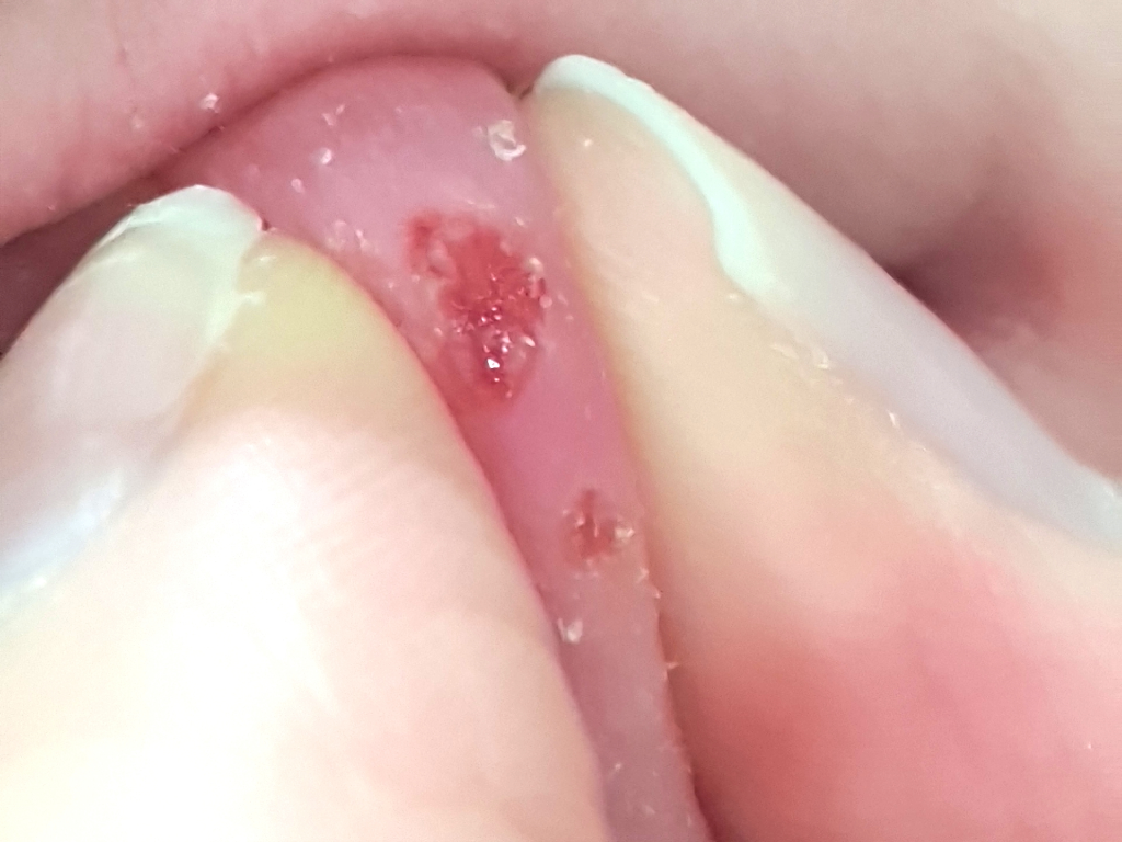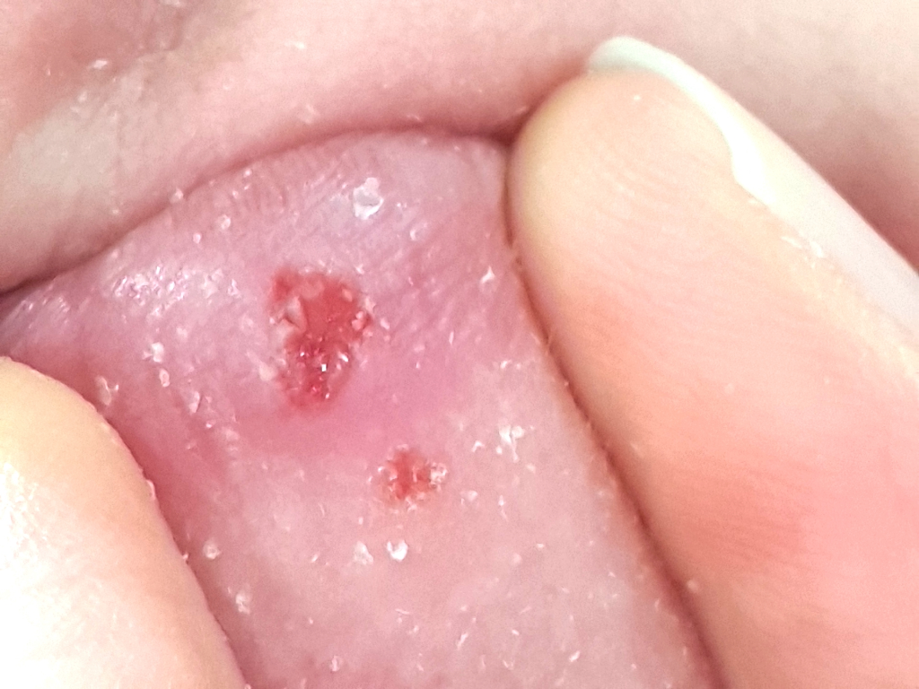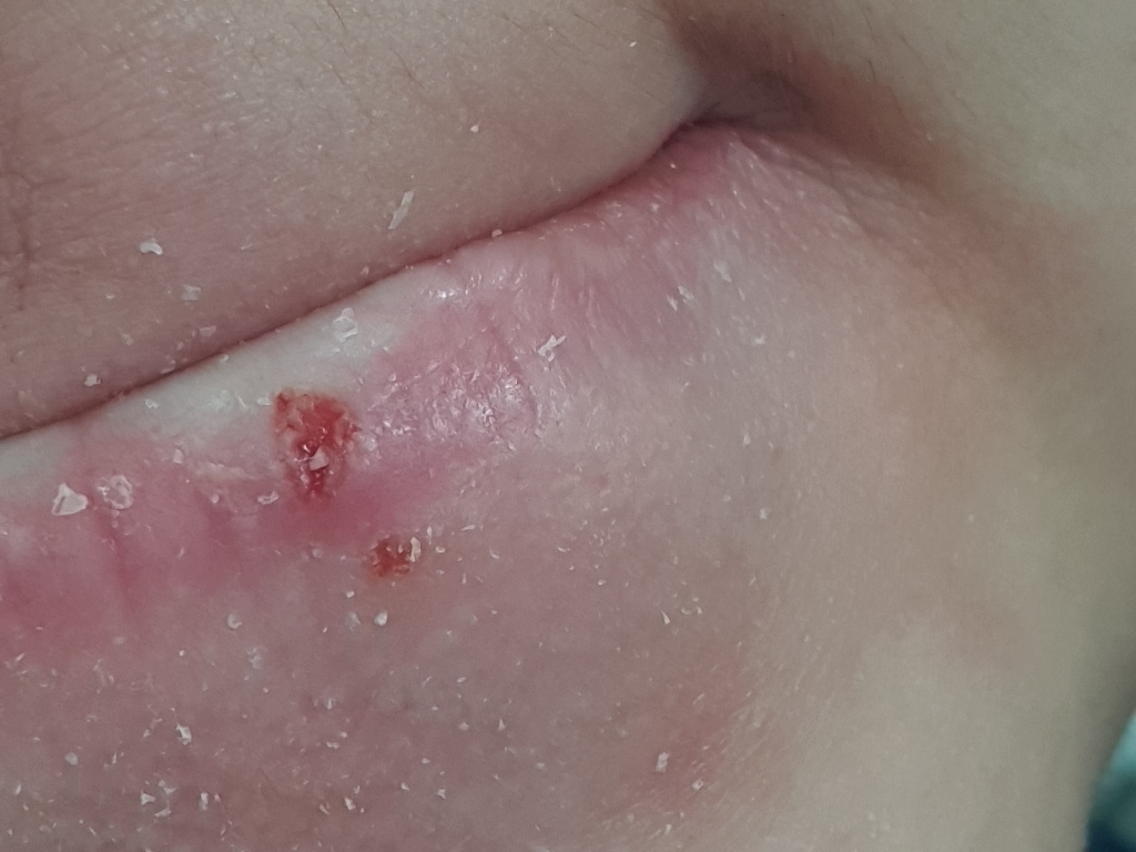 헤르페스는 수포성 병변을 만들기 때문에 보여주신 사진을 보고 헤르페스를 의심할 이유는 없겠습니다.