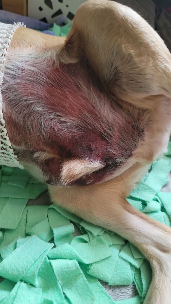 강아지 피지낭종 수술 후 피멍이 들었어요