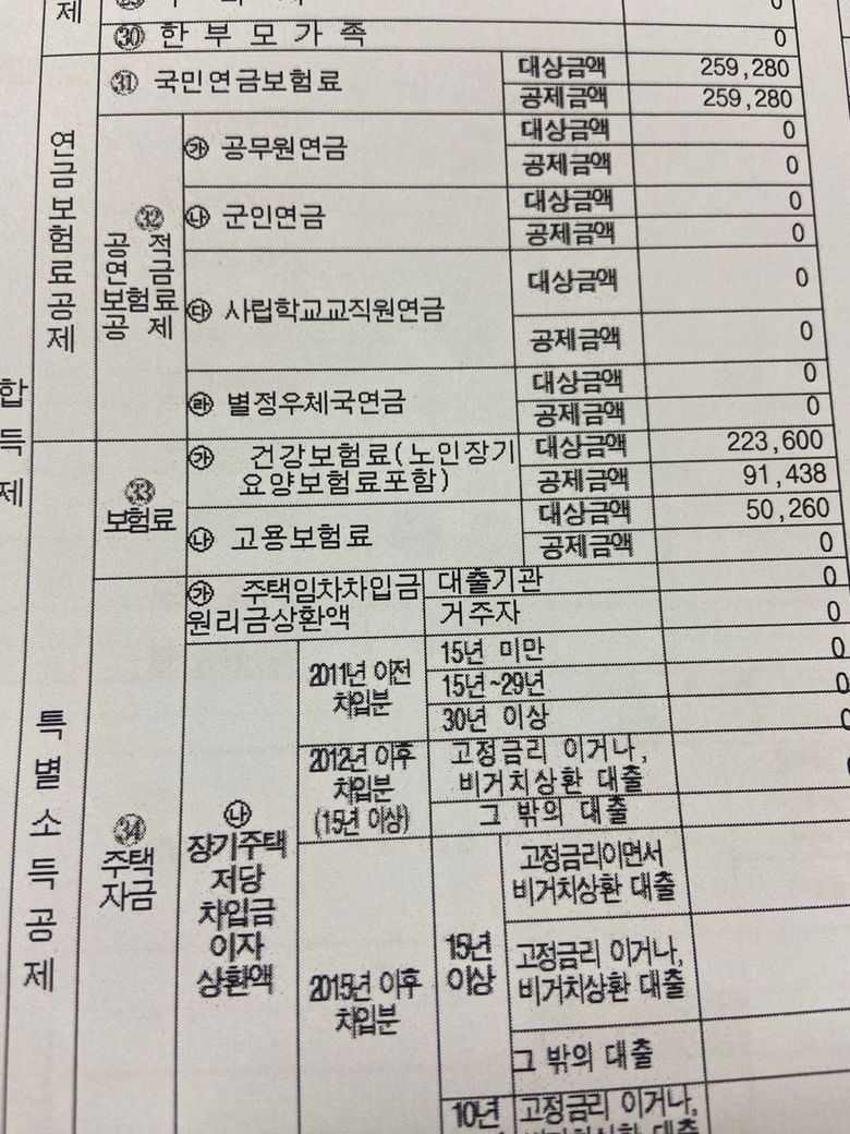 이미 소득공제를 모두 받으신 것으로 보여집니다. 공제금액을 작성하시면 됩니다.
