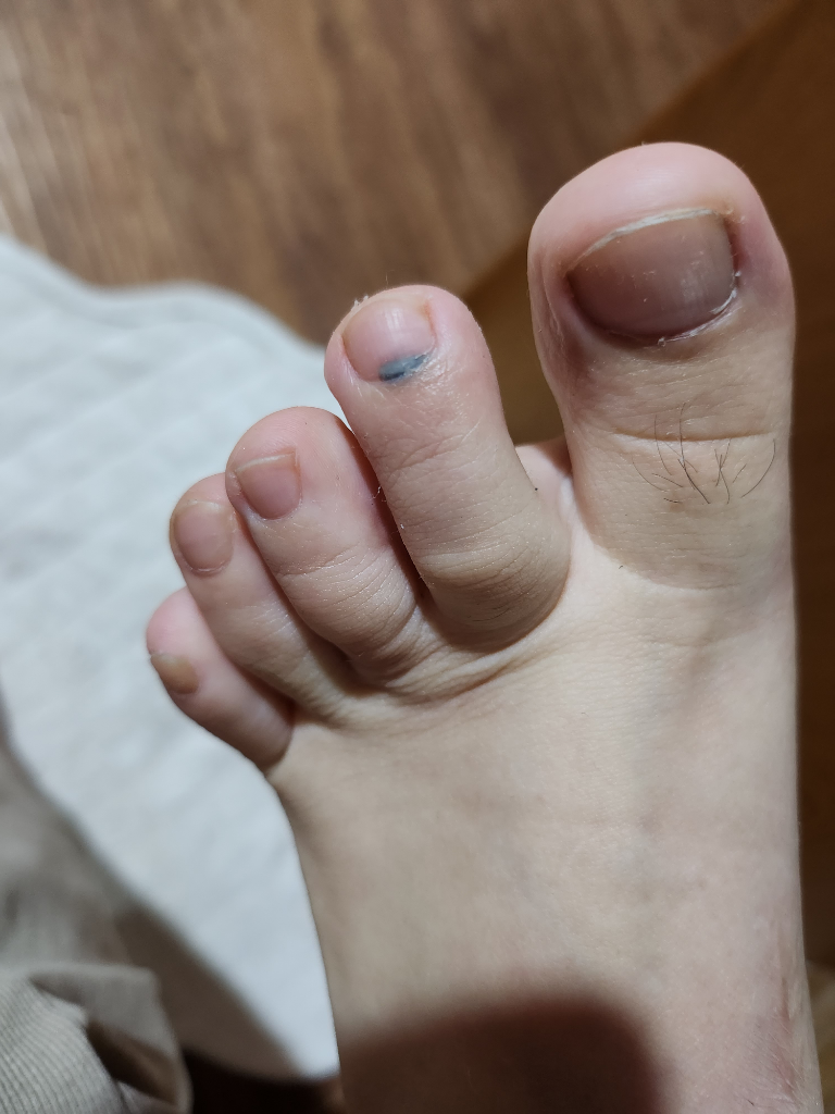 생긴 것은 조갑하혈종, 즉, 멍 같아 보이긴 하지만 흑색종 같은 문제를 배제할 수는 없겠습니다. 관련하여서는 외상 등 명확한 원인이 있었던 것이 아니라 우연히 발견된 소견이라면 피부과 등 병원 진료 및 검사를 받아보는 것이 안전하겠습니다.