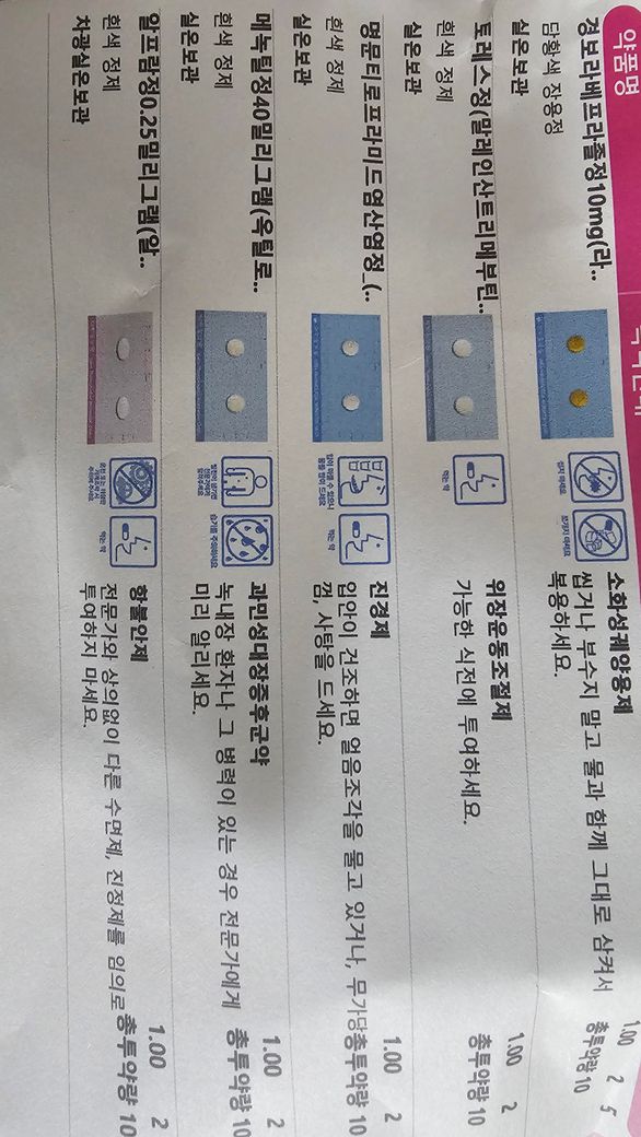 아침 점심 저녁 세번 먹는약 내용물중에