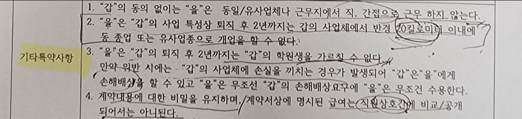 프리랜서 강사 제 행동이 해당 특약에 위반될까요?