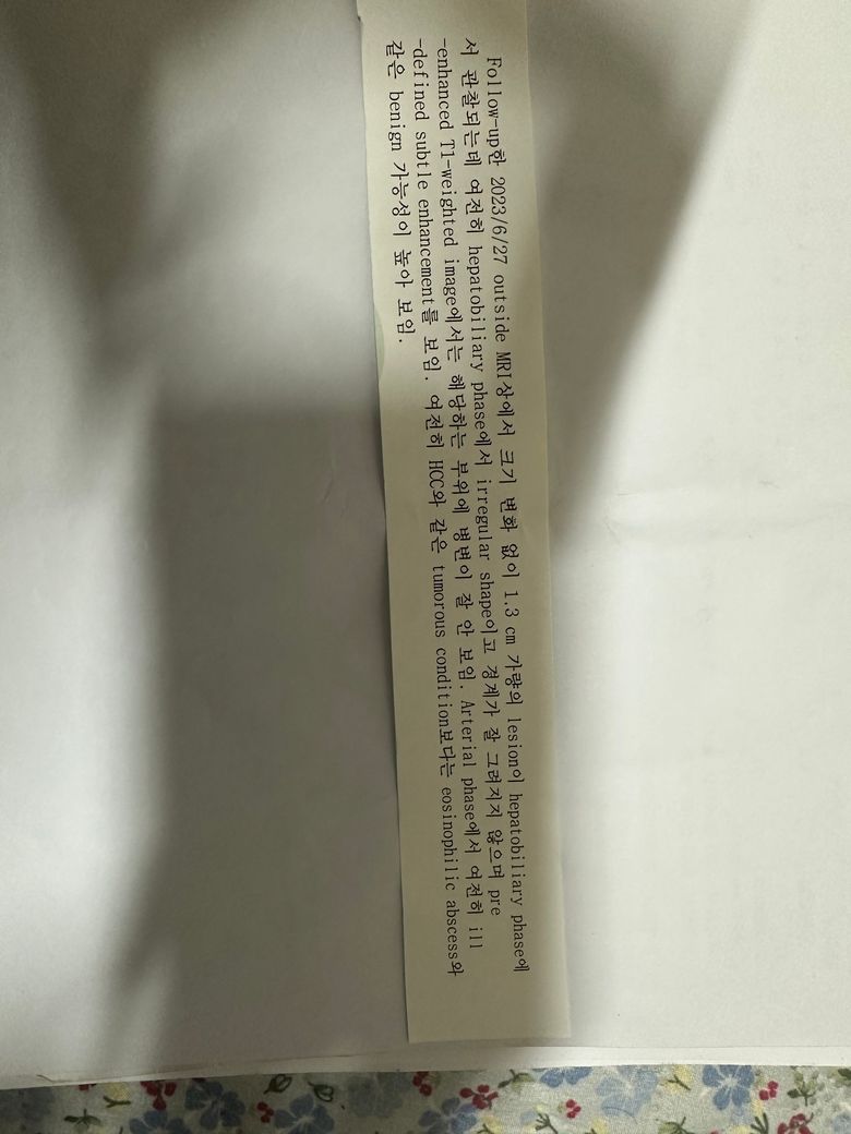 환자분의 경우 enhance pattern이 HCC에 전형적이 모습이 아니라서 그렇습니다.
