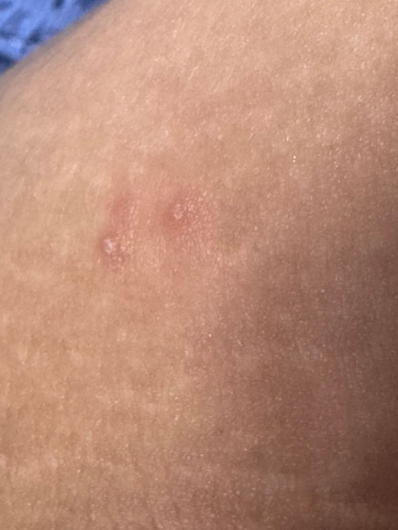어제 밤 허벅지 안쪽이 가려워 보았더니 사진처럼 뭐가 나있더라구요 검색해보니 헤르페스 같기도 하고 그냥 물집 같기도 해서 여기다가 여쭤 봅니다 빨리 병원을 방문해야하나요?