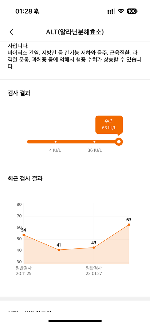 ALT 수치가 63이라고 하는데 문제가 있을까요?