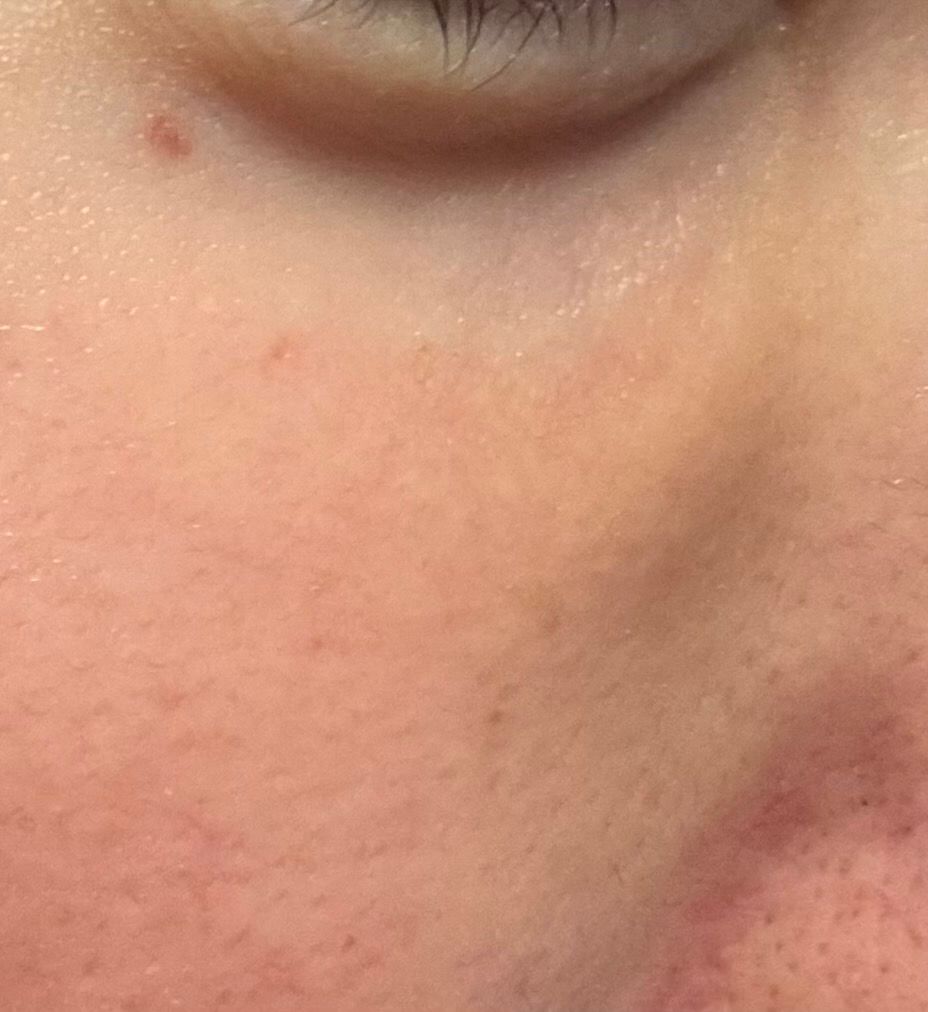 살을 살짝 들어서 만져보면 “”눈밑 결절 인대부분 주변으로도 울퉁불퉁하게 피가굳은건지 짓눌렀던 부분 주변으로 작은 산같이 만져집니다.“”