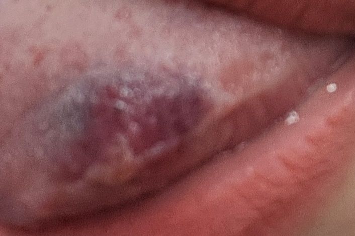 혀를 씹었는데 피가 엄청 나더니 다음날 피멍이 들었어요.