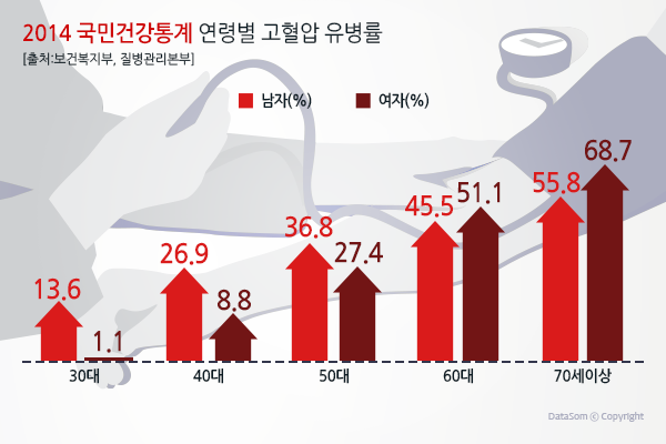 여성들의 경우 갱년기를 기점으로 고혈압 비율이 상당히 증가합니다