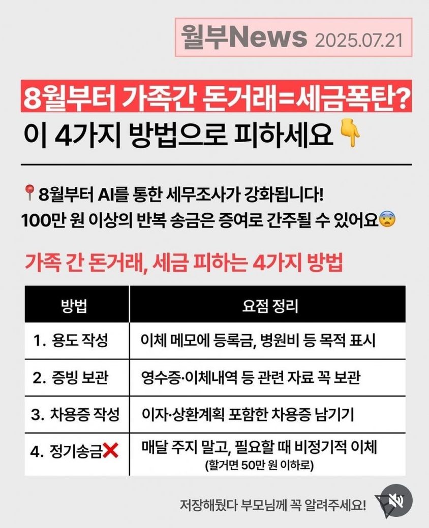 제가 100만원 이상 매달 가족한테 돈을 보내면 앞으로 세금 뜯길수도 있다는 내용을 접해서 불안한마음에 여쭤봐요