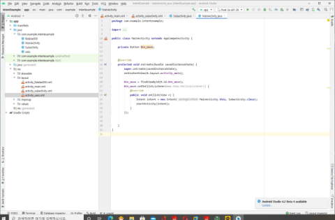 MainActivity 이 부분은 이동하고자 하는 Activity 명으로 추가하면 됩니다. (AndroidManifest.xml에 등록이 되어있어야합니다.)