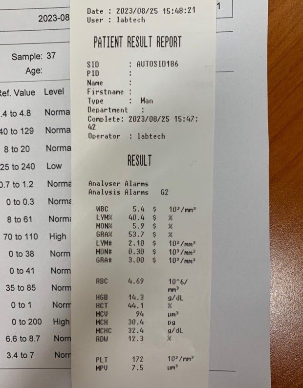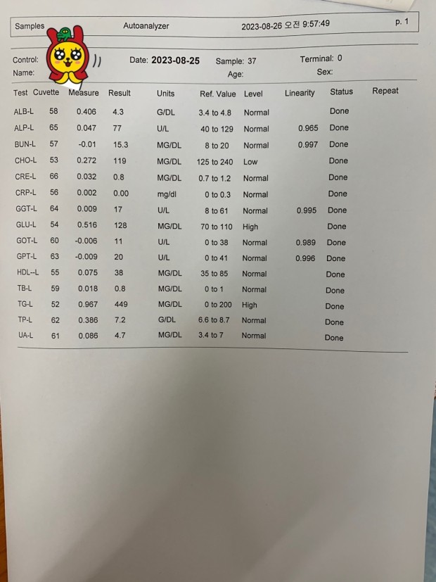 올려주신 피검사에는 살이 찌는것과 관련된 검사가 포함되어있지 않습니다.