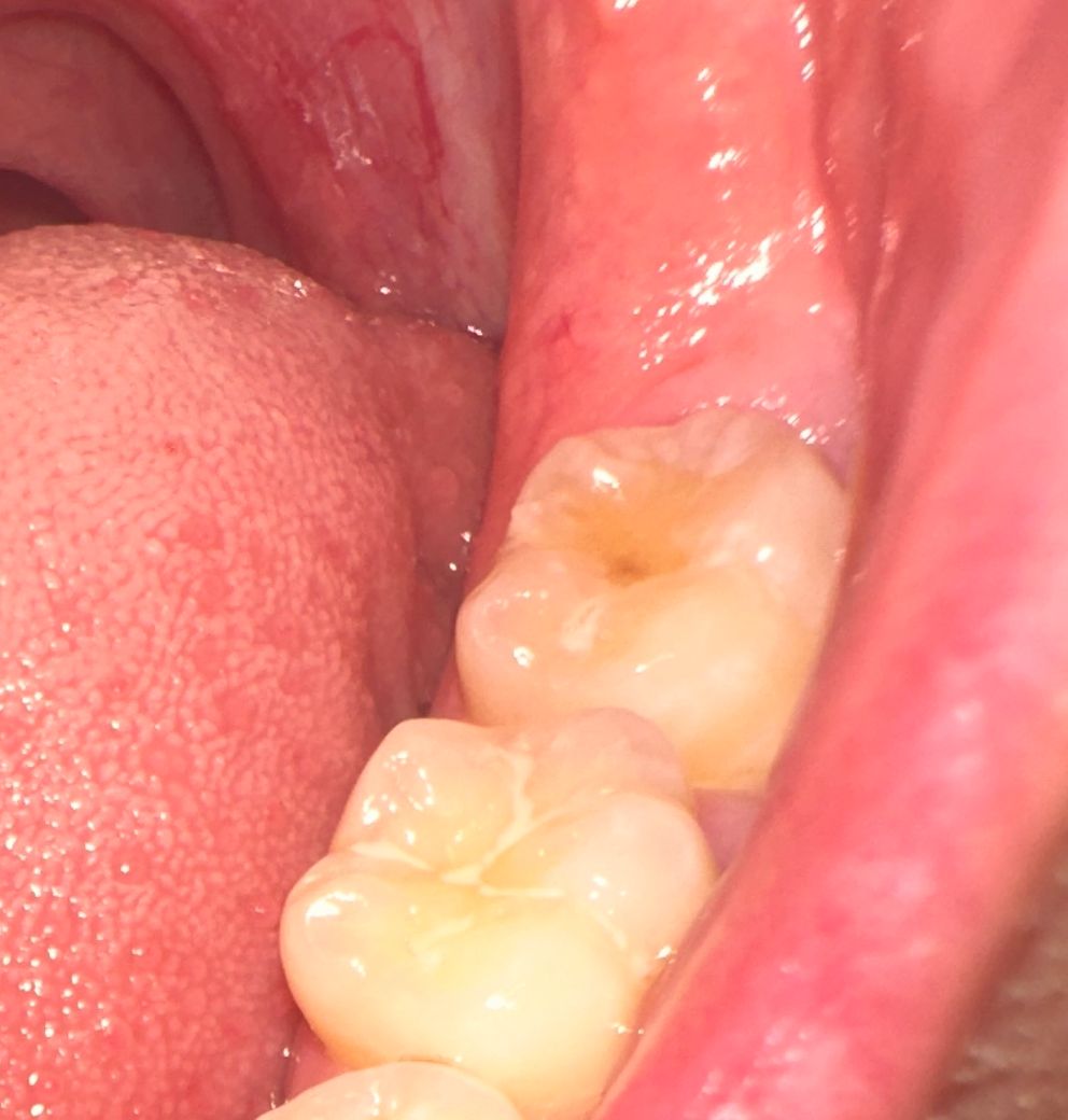 한달 전 가장 안쪽 어금니에 레진 치료를 받았었습니다.그 뒤 매일 식사 후 30분 뒤 양치하는 등 엄격하게 관리하고 있었는데 오늘 다시 확인해보니 치아 중앙에 저런 갈색 구멍인지 점인지 갈색으로 변색되어 있는 것이 있어 저게 다시 충치가 생긴 것인지 궁금합니다!