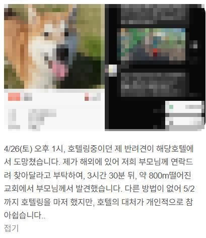 강아지를 호텔에 맡겼는데 호텔에서 분실했습니다.