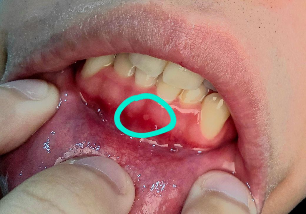 이틀 전에 갑자기 욱신거리는 통증이 오더니 며칠 지나 통증이 가라앉길래 별 문제 없나 싶었는데, 오늘 다시 욱신거리길래 확인했더니 앞니 잇몸 쪽에 살짝 흰 점이 생겼습니다. 나머지 부분은 멀쩡한데 저 부분을 건드렸을 때 살짝 붓기가 있었고, 저기서만 통증이 느껴지더라고요. 그리고 잇몸 색도 윗니와는 다르게 선홍색이 진해졌습니다. 해당 부분의 치아가 흔들리거나 통증이 느껴지는 것 외에는 특별한 이상은 없었습니다.