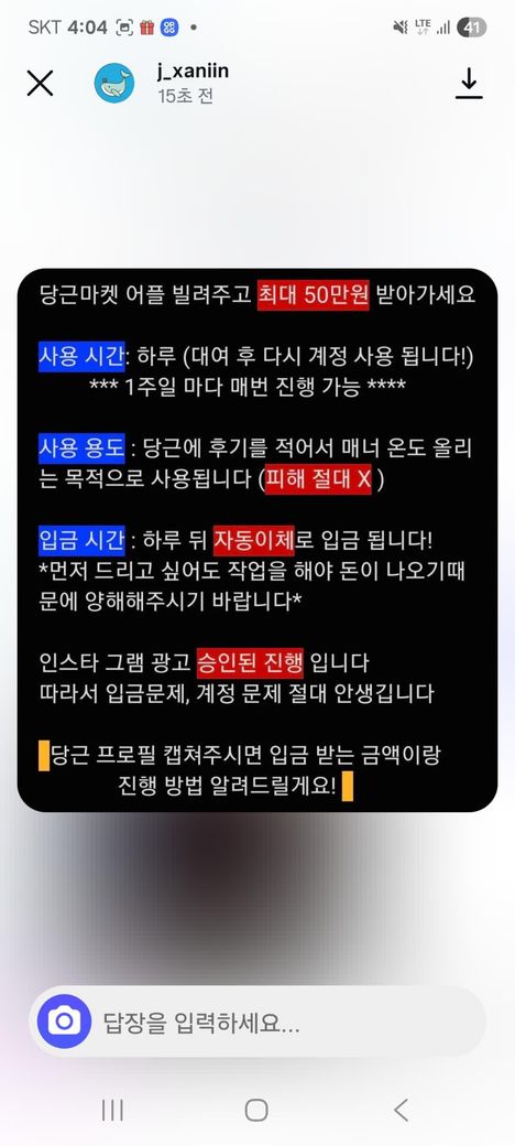당근계정 빌려주면 최소10만원준다는광고 진짜인가요