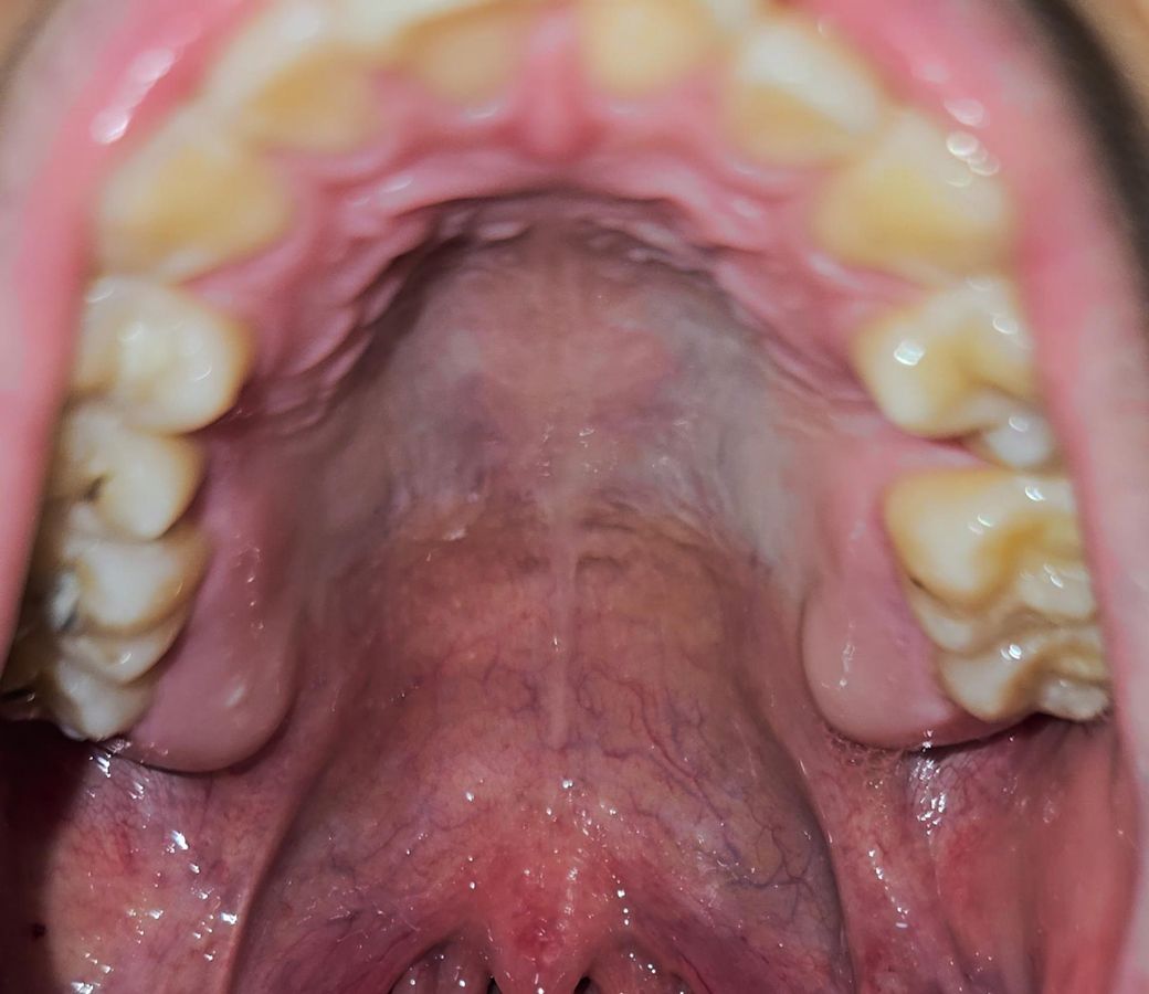 첨부하신 사진과 말씀만으로는 큰 이상소견 확인되는 바는 없어보입니다. 입천장에는 단단한 부분과 부드러운 부분 두 부분으로 나누어져 있으며 단단한 부분 있는 것이 정상 해부입니다. 특별히 사진에서는 과각화나 섬유화를 의심할만한 소견 보이지는 않습니다.