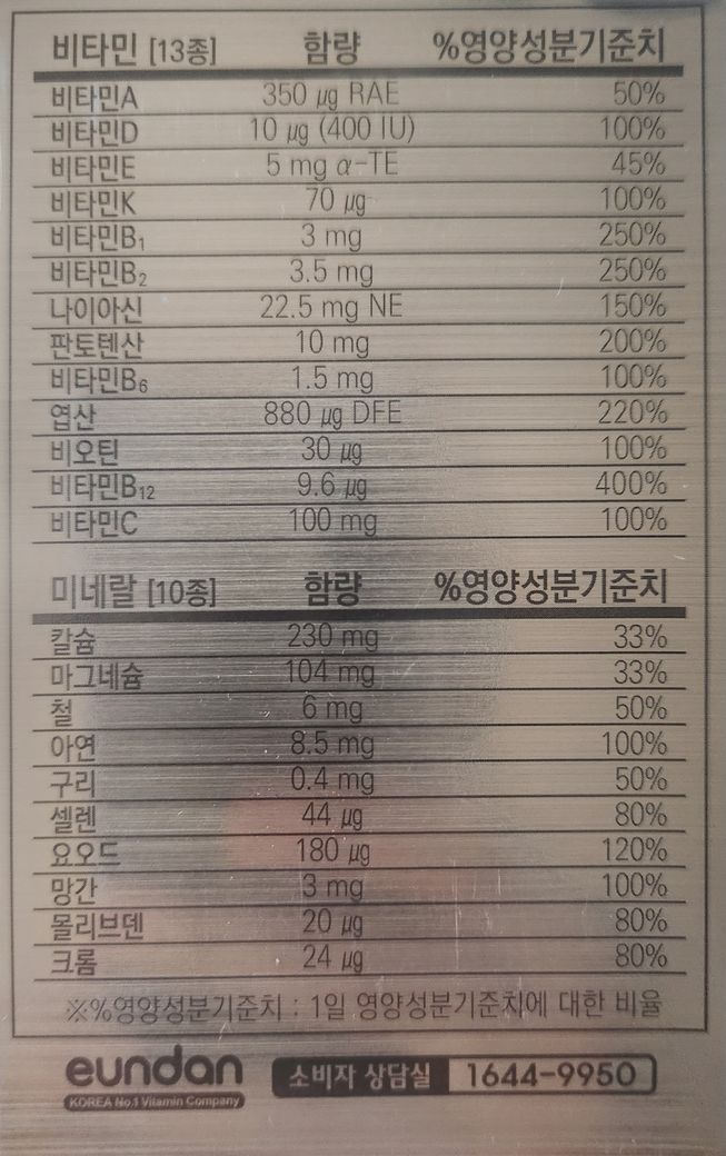 하루 영양제 쉽취 권장량 궁금합니다.