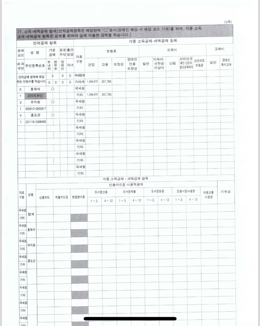 죄송하지만 연말정산 등 세금과 관련된 질의는 인사/노무카테고리가 아닌 세금/세무카테고리에 하시어 세무 전문가인 세무사의 상담을 받으시기 바랍니다.
