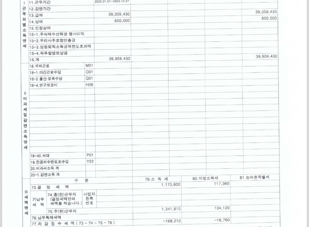 삼쩜삼이란카톡어플에서 120만원받을거라고 조회가 되었는데 원청징수에는 이거밖에 안준다고 나와있어요 잘못된거 아닌가요? 12.27일부로 퇴사하고 현재는 다른직장 다니고 있습니다