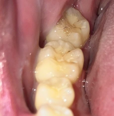 집에서 거울을 보다기 오른쪽 아래 어금니 두개에 이렇게 떼 낀거처럼 되있는데 충치 일까요..? 통증이나 이 시림등의 증상은 따로 없습니다