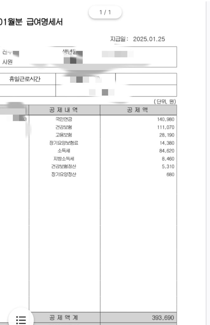 매달 급여명세서에 세전 금액은 똑같은데 공제액이 달라서 세후 실수령액이 달라지는데 뭐 때문에 그런건가요?