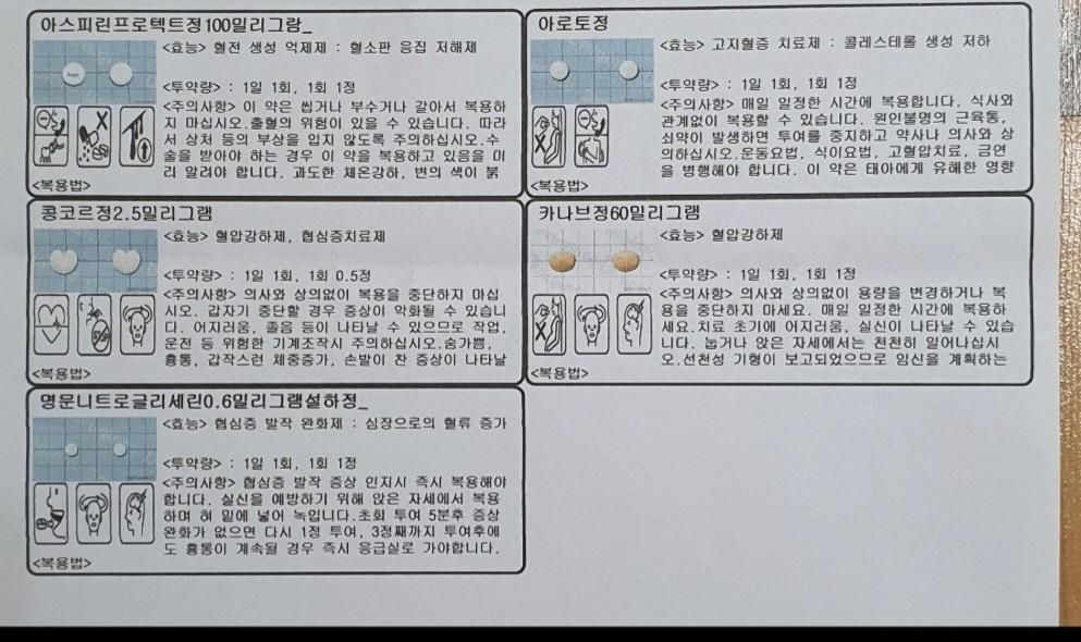 고혈압, 심근경색약, 아스피린, 플래리스정 75ml 외 사진첨부