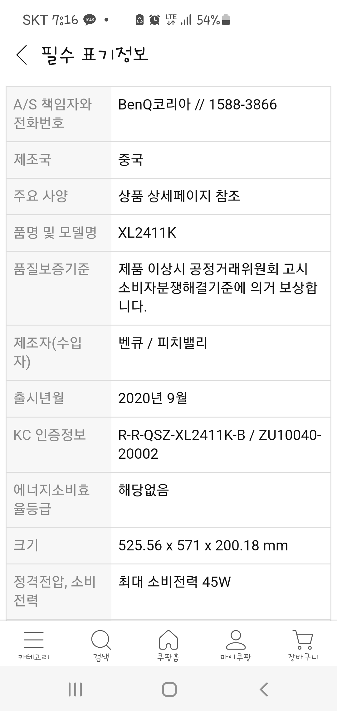 쿠팡에 XL2411K-B 검색하면 판매제품 나옵니다.