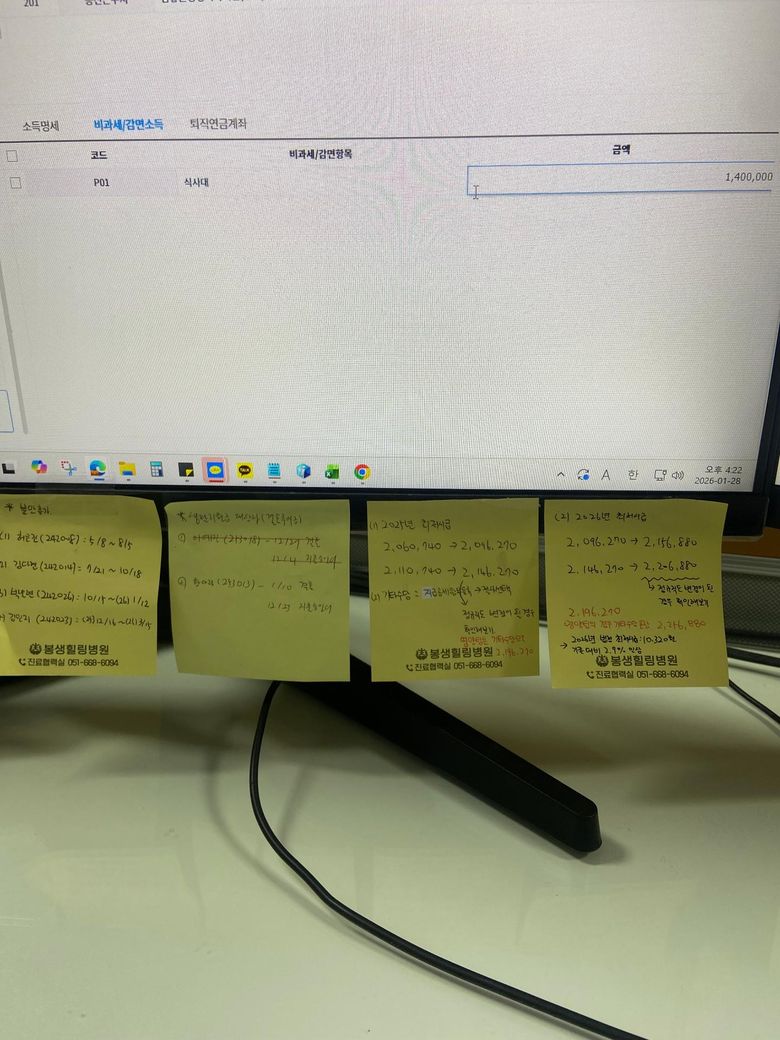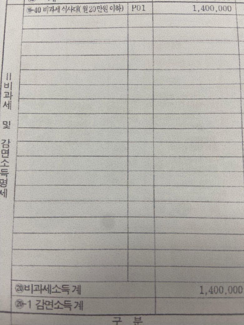 종전근무자가 비과세 식사대 소득이 1,400,000원이 있어 프로그램 종전근무지 비과세 금액에
