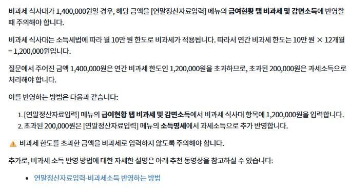 1,400,000원을 그대로 반영해도 되나 싶어 ai에게 문의해보니 위 사진상의 답으로 나왔는데