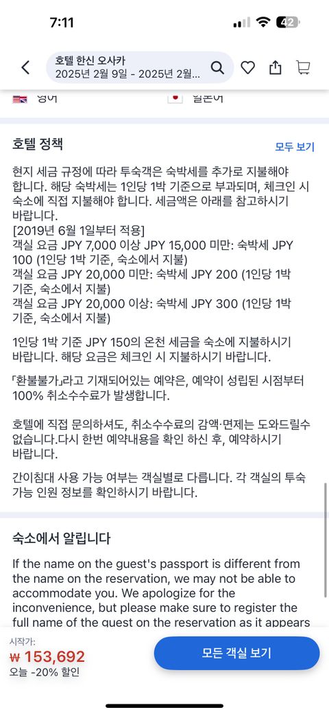 그리고 1박에 15만원이면 두번째 구간에 해당을 하시기에 3X200X14=8400엔을
