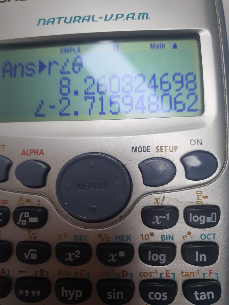 POL(8.260324698, -2.715948062) 입력 후 실행하면 크기 r과 각도 θ 값이 표시됩니다.